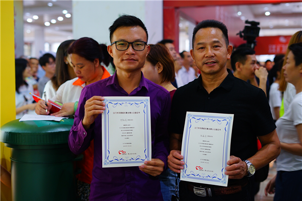 在活动现场,除了激发儿童阅读乐趣的体验外,无限极乐善会志愿者身体力行,踊跃地参与“捐书点”的闲置图书募捐活动,呼吁更多市民关注乡村阅读,让乡村儿童有书读、读好书,共同推动江门阅读文化建设和发展,本次募捐的图书将捐赠给五所童梦阅读空间。三天活动(7月12~14日),共有52人次捐赠了超过100本的闲置图书,并领取了公益证书。