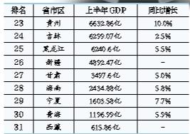 今年上半年,跻身“万亿俱乐部”的省份有16个,除前十名外,还有福建、安徽、北京、辽宁、陕西和江西。与去年14个省份跻身“万亿俱乐部”相比,今年新增了陕西和江西。