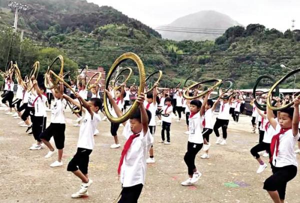 如今,仙岭小学每周从周二到周五都有内容不同的“大课间”体育活动:广播体操、白鹤拳操、五祖拳、轮胎游戏……