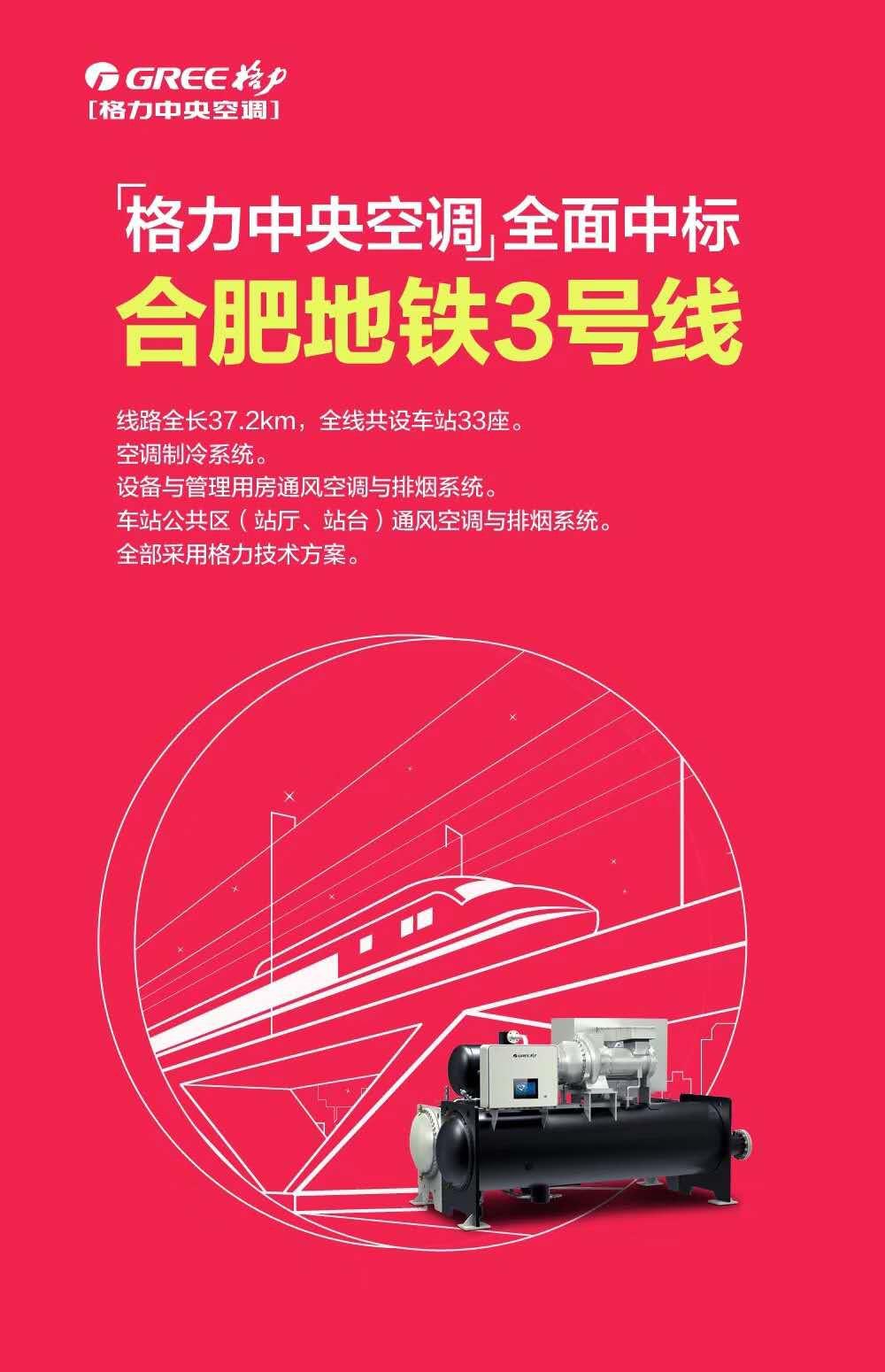 近日,格力中央空调喜讯频传,相继中标合肥地铁3号线和徐州地铁2号线,凭借自主研发的核心科技和优质机型服务当地地铁项目,保证项目沿线地铁设备运行安全、稳定运行,助力当地民众绿色、舒适出行。